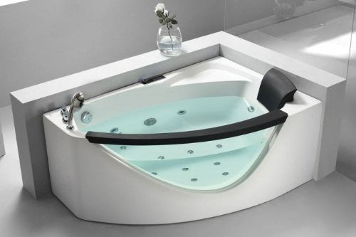 EAGO AM198-L 5-Feet Left Drain Rounded Clear Modern Corner Whirlpool Bath Tub with Fixtures