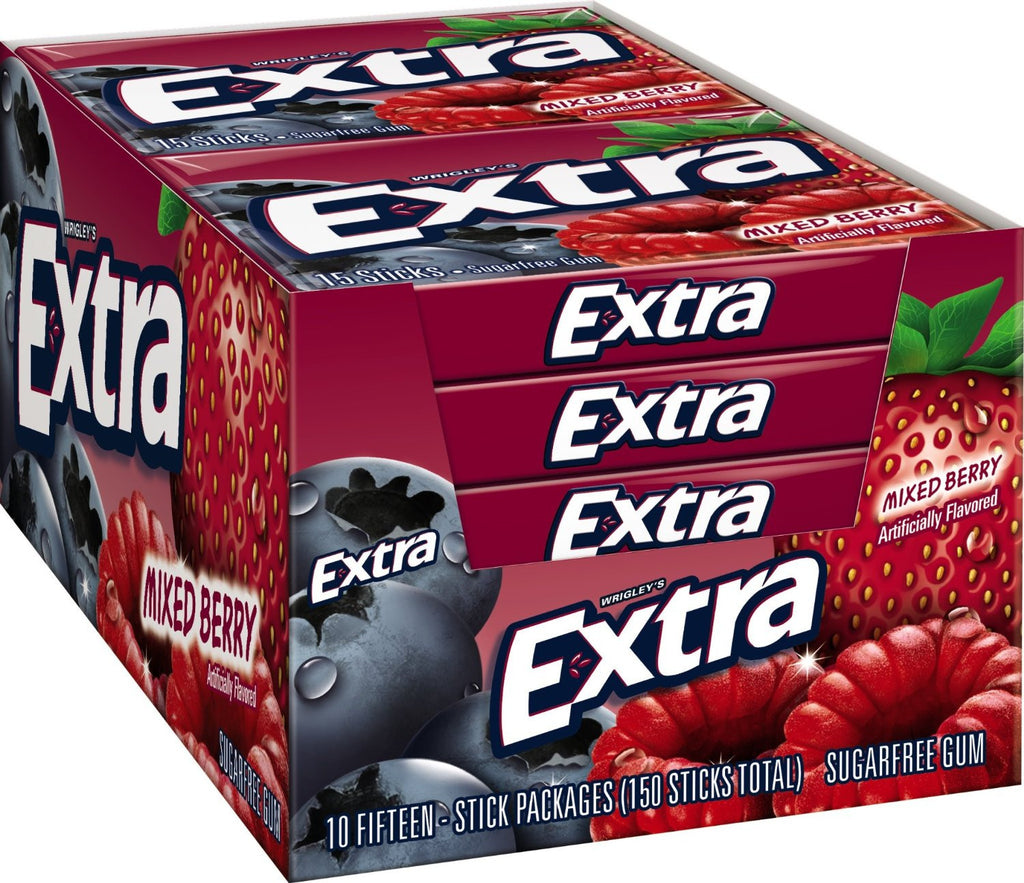 Extra Sugar Free Gum, Mixed Berry, 15 Stick Slim Pack (Pack of 10)