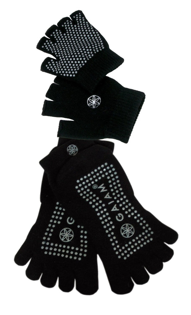 Gaiam Grippy Yoga Sock and Glove Set - Black