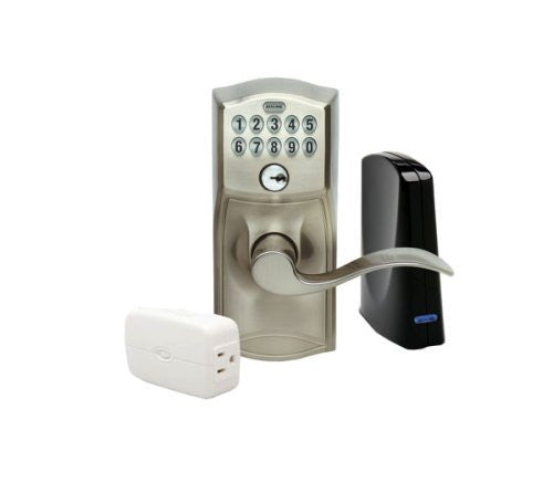 Schlage LiNK Wireless Keypad Entry Lever Lock Starter Kit System, Satin Nickel